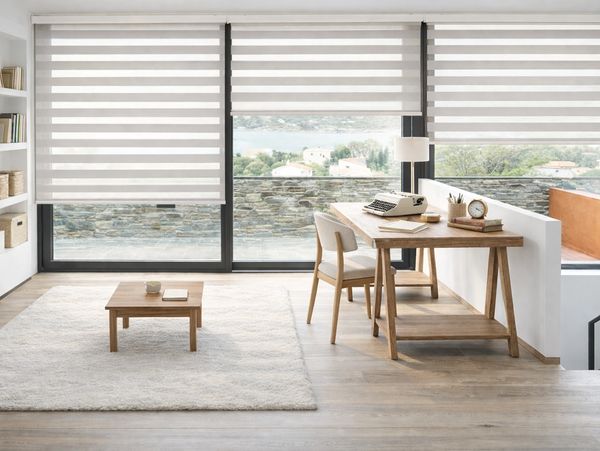 Experience the refined beauty of zebra shades—an innovative window covering that blends modern design with precise light control. Featuring alternating sheer and solid fabric bands, zebra shades allow you to transition effortlessly from softly filtered daylight to full privacy, enhancing both comfort and style in any space.